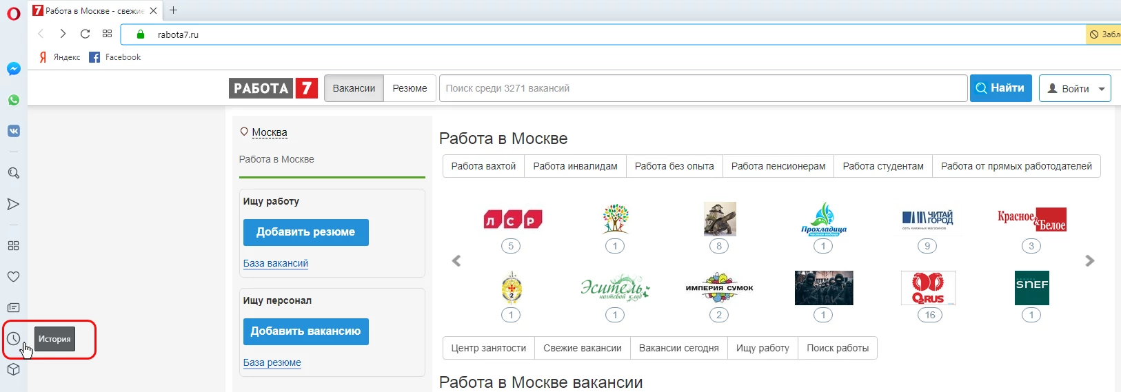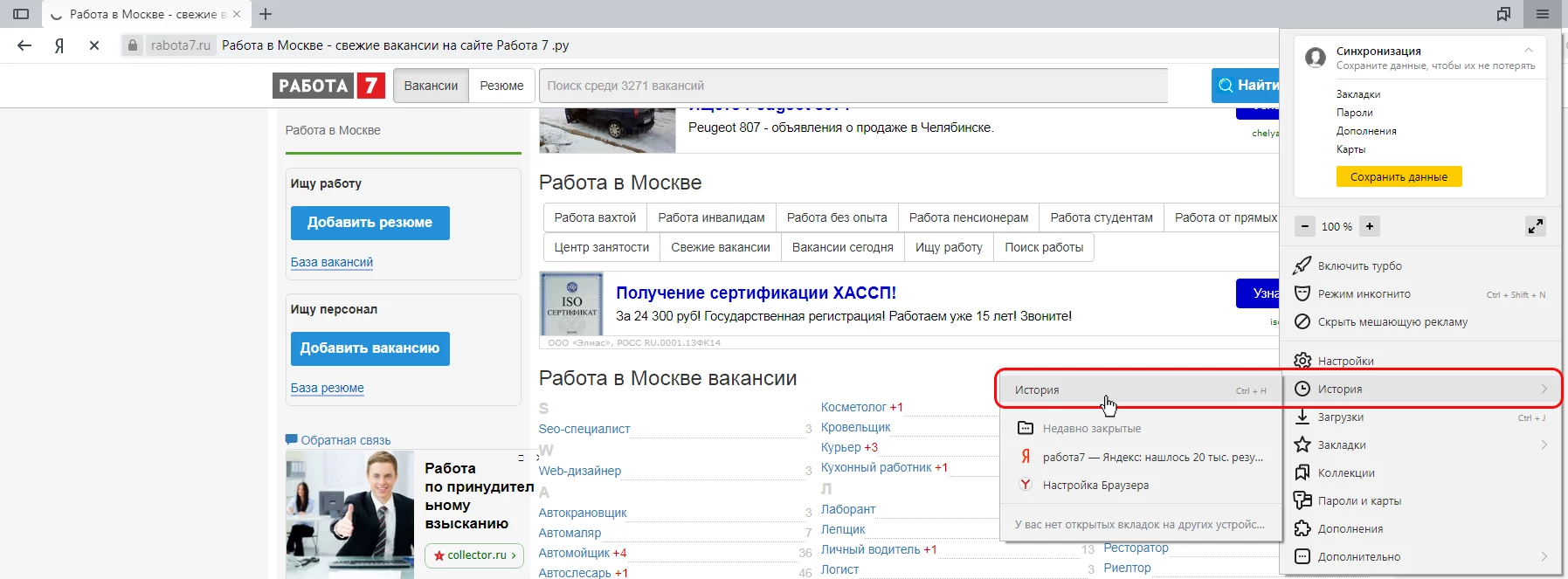 2. В появившемся списке выберите пункт "История", далее "Очистить историю посещений"