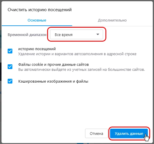 Чтобы удалить временные файлы браузера Yandex.Browser